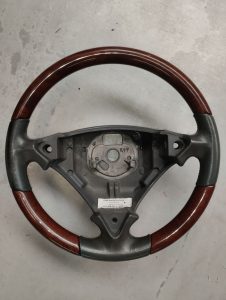 La société deutschcar27 propose un volant en cuir gris foncé et ronce de noyer.